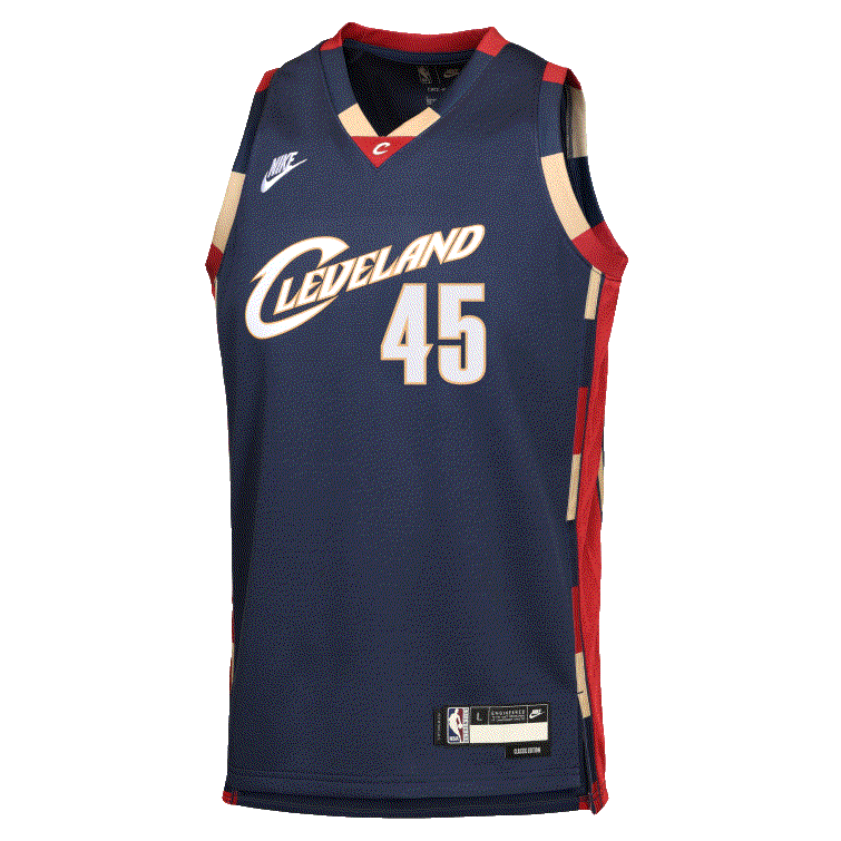 Have your little ballers rep their squad and cheer on their favorite star with the Donovan Mitchell Cleveland Cavaliers 2025-26 Hardwood Classic Edition Swingman Youth Nike NBA Navy Jersey, which features sweat-wicking double-knit fabric that is lightweight yet durable - designed specifically to help keep the little ballers cool, heat applied twill name and numbers with no stitch as well as design details that demonstrate your love!