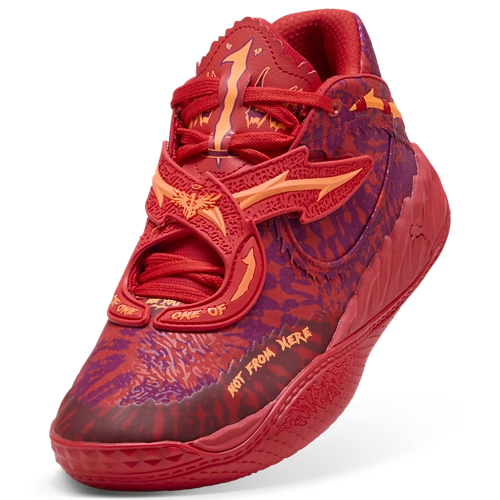 LaMelo Ball’s latest signature drop, MB.05 Crowd Surf, is fueled by his rockstar status and the fans who ride with him. This drop is for the ones who bring the noise, whether they’re in the stands or lacing up themselves. Dressed in a bold red tie-dye upper, the Crowd Surf is unmissable with sculpted overlays, moulded barbed wire details, and Melo’s signature touches throughout – from the gold wing straps on the heel to the moulded “1” and skull on the outsole.