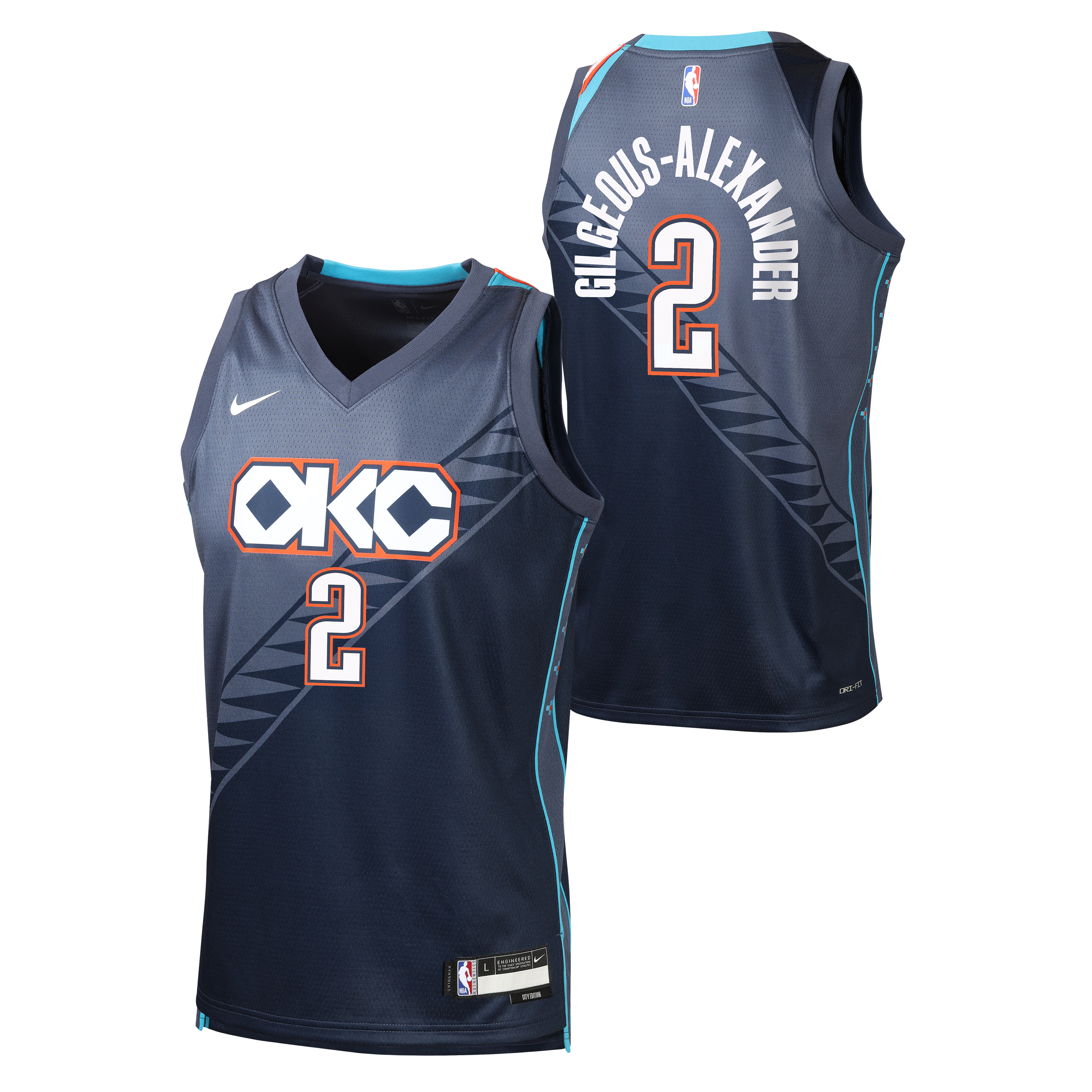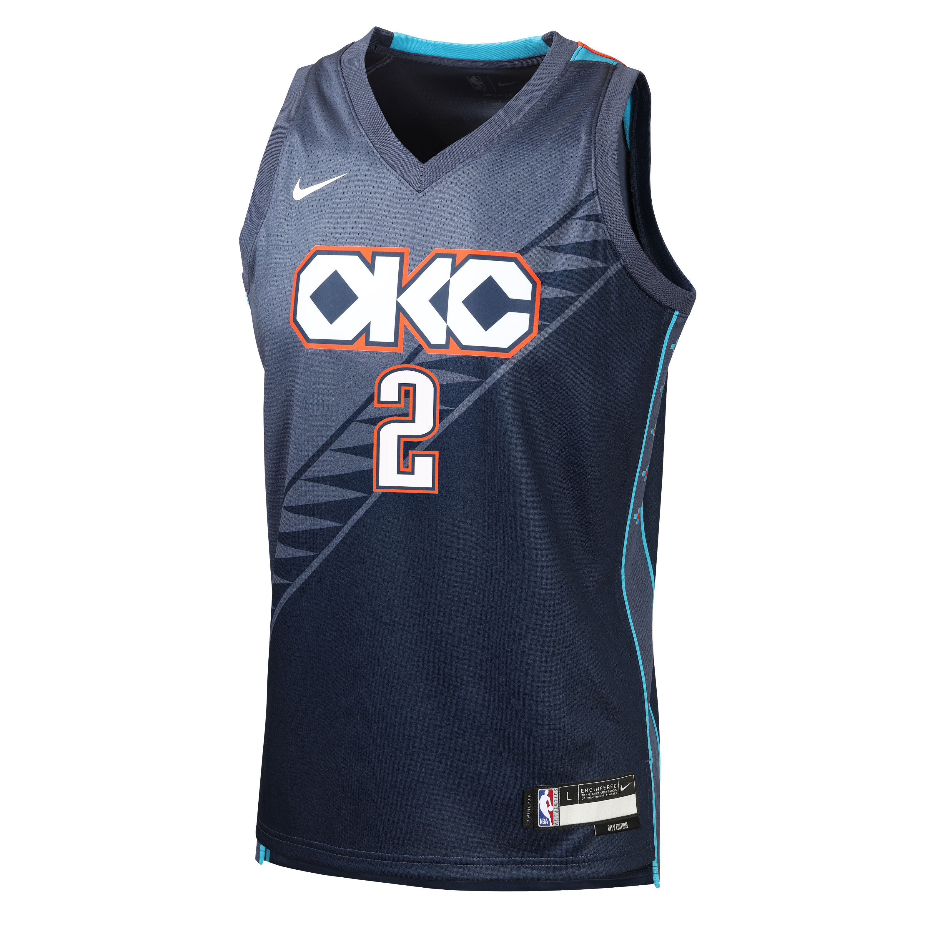 Have your little ballers rep their squad and cheer on their favourite star with the Shai Gilgeous-Alexander Oklahoma City Thunder 2025-2026 City Edition Swingman Youth Nike NBA Navy Swingman Jersey, which features sweat-wicking double-knit fabric that is lightweight yet durable - designed specifically to help keep the little ballers cool, heat applied twill name and numbers with no stitch as well as design details that demonstrate your love for the game!